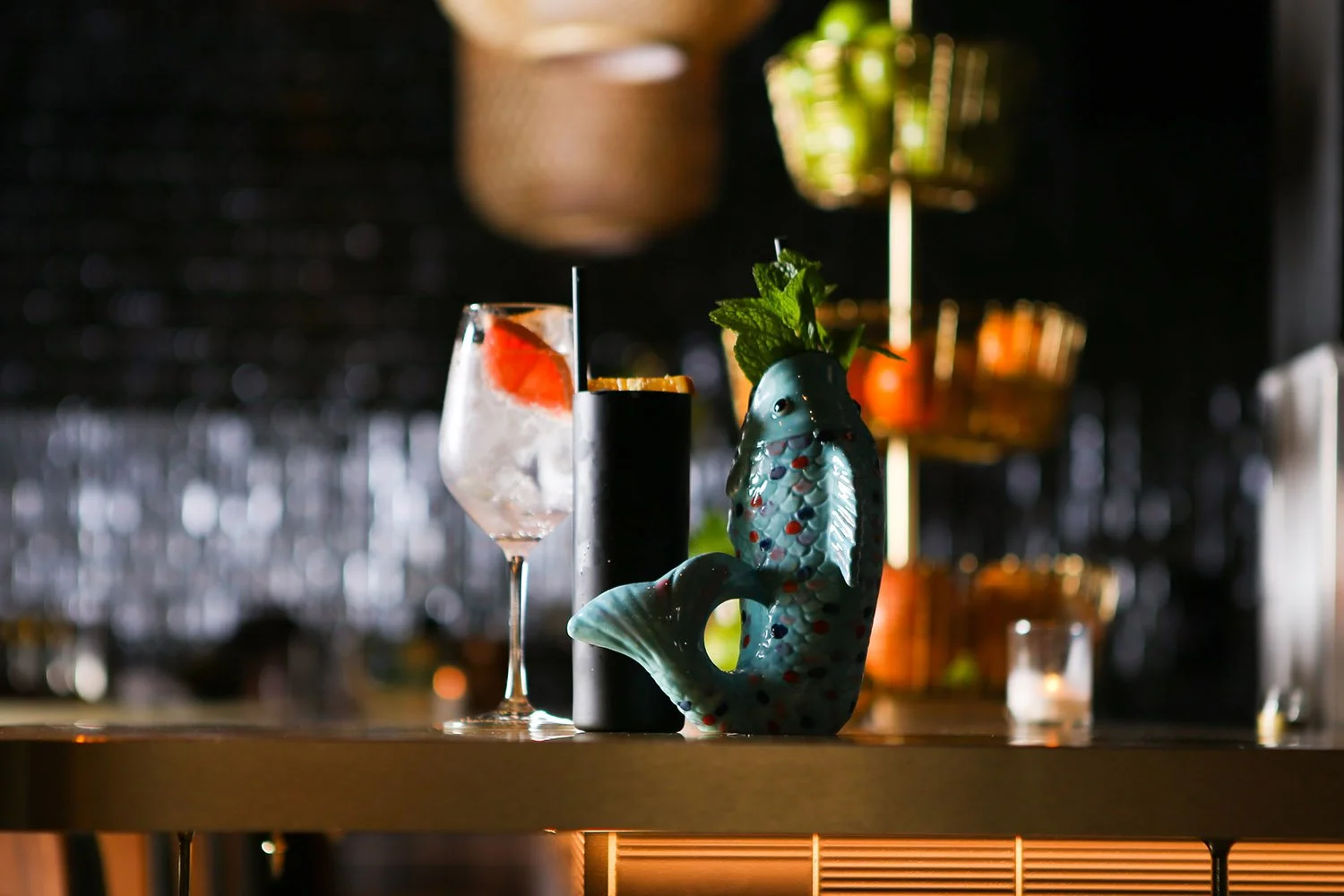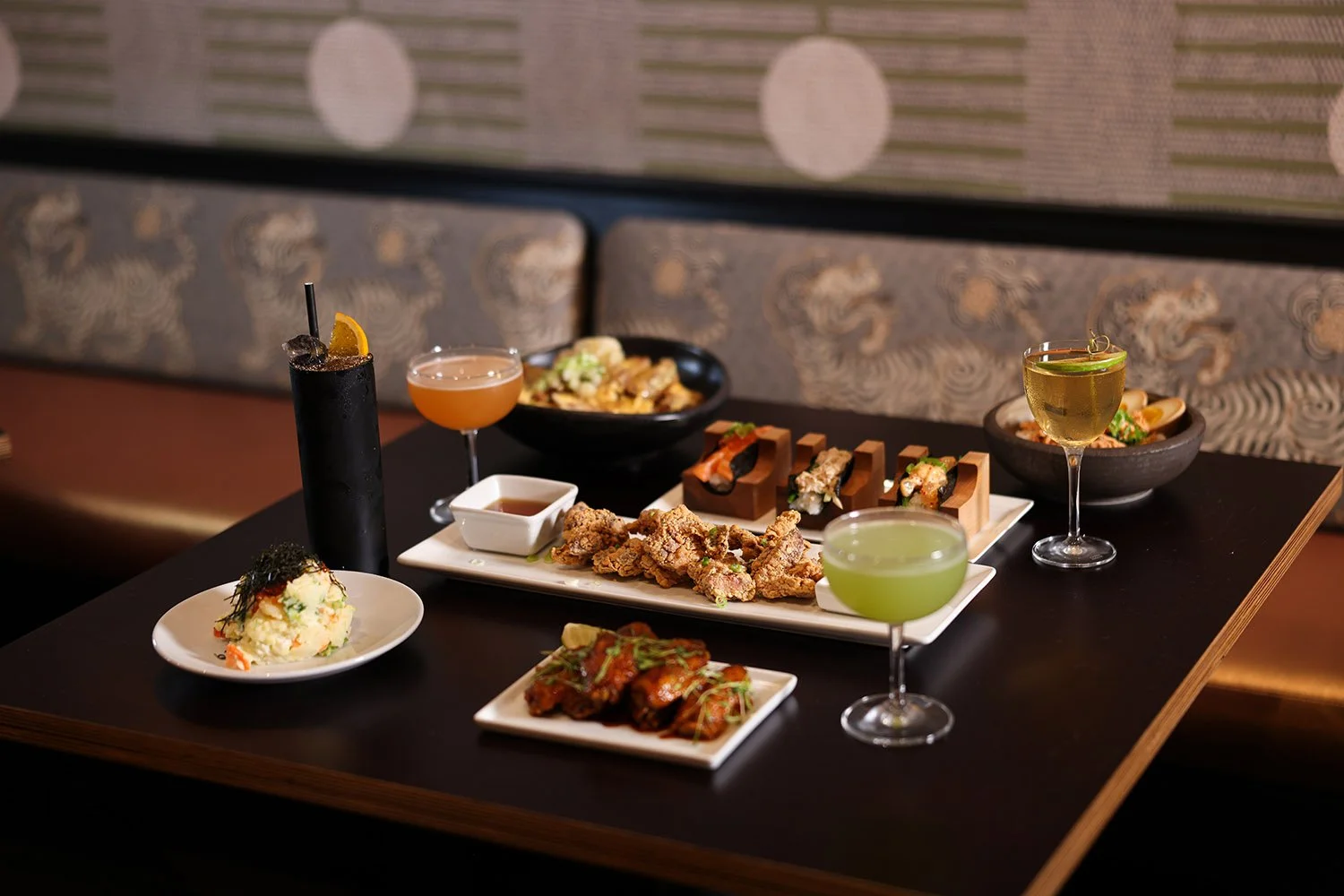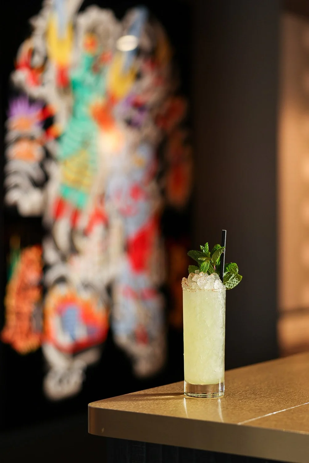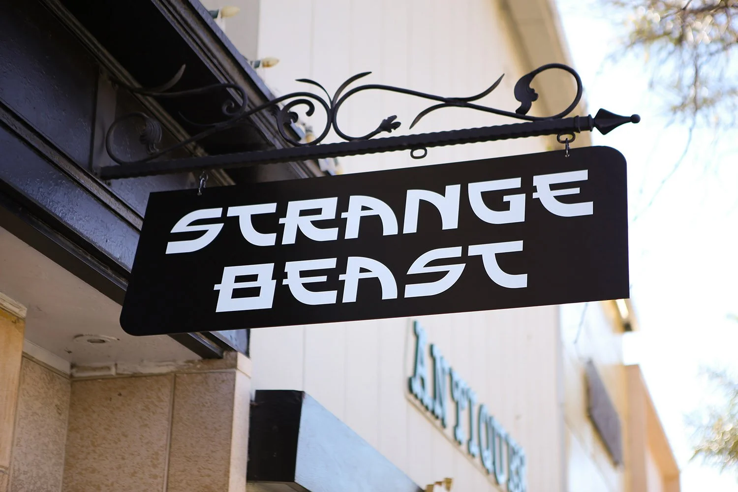 Strange Beast is a contemporary cocktail izakaya situated in the historic Bank of Italy building in Downtown Ventura. The cocktail menu by the creative geniuses of Good Lion Hospitality celebrates Japanese flavors. It is best paired with the Japanese tapas prepared by the Michelin Bib Gourmand chefs of Sama Sama Restaurant Group. The space was inspired by the dive bars of Tokyo with an American rock ' n ' roll edge. It's a little bit street with a nod to fine craft in both design and cuisine. Dark, moody materials with interesting texture are a salute to Japanese craftsmanship and set the stage for perfectly paired cocktails and bites. Intriguing textiles, pops of color, and brass are layered in for a bit of glam, while Kaiju-inspired Godzilla and King Kong characters create graphic pop art and wall decor that speaks to the Strange Beast inside every one of us.